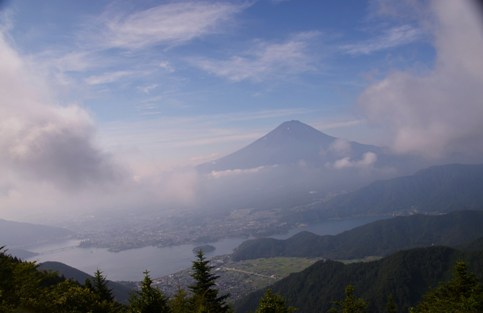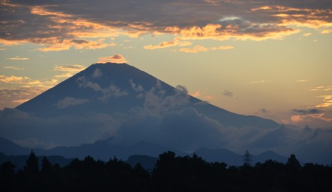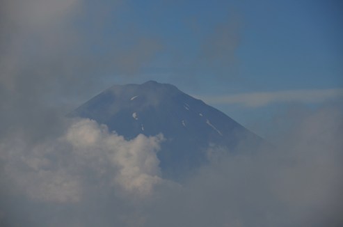 10日の朝は昨日とは違って朝焼けで雲が真っ赤になっていた。山荘近くの船津公園墓地(富士の里)からも富士山がすっきり見えた。(写真右:撮影7時)