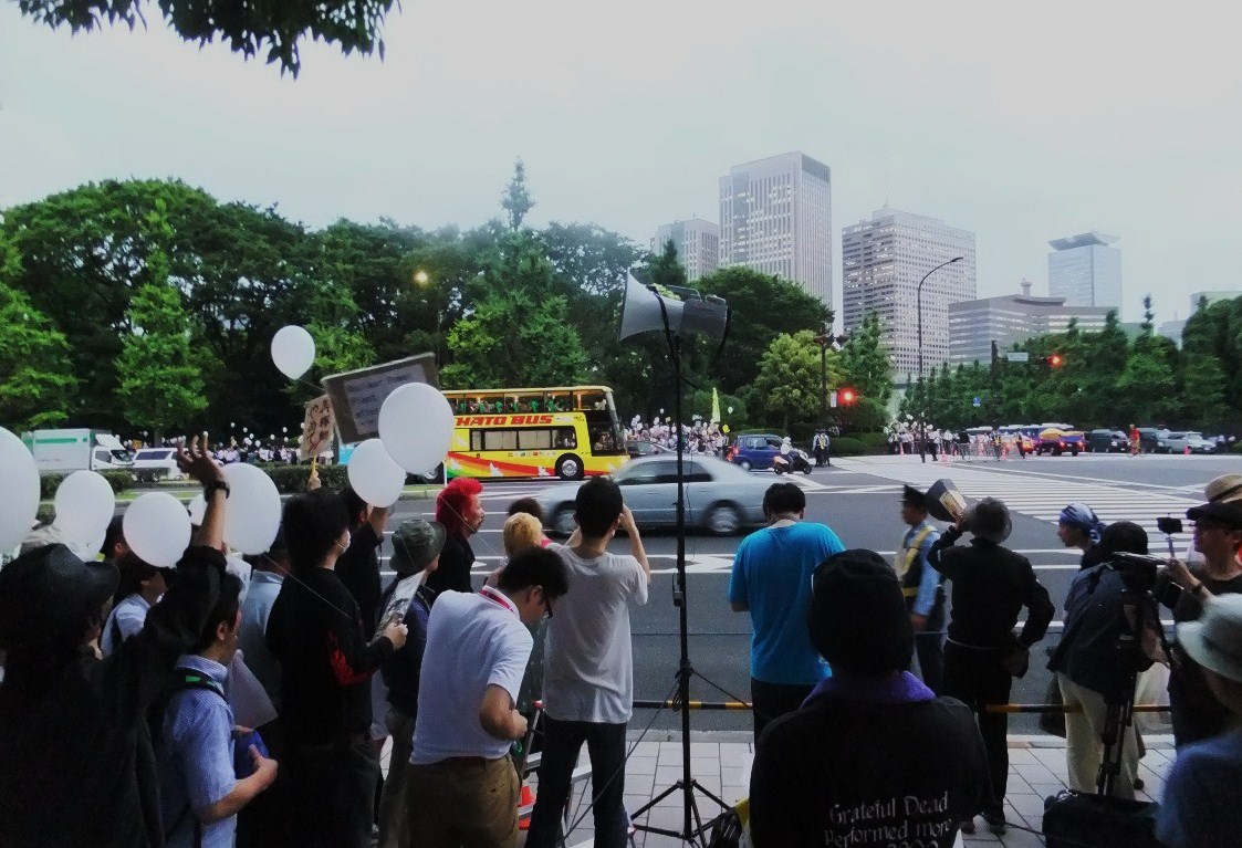 警察の指定エリアだけで行うデモらしくない抗議デモになっているが しかし市民もデモも進化した。国会や官邸を取り巻く交差点の警察に足止めにされたそれぞれで交差点毎に4つの門をさらに2方向でミニ集会が行わ色々な方角から「原発いらない!再稼働反対!」の連呼が輪唱になってコダマするようになった。