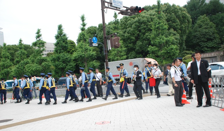 官邸前では毎週金曜日に再稼働反対のデモが行われているが、警視庁はこの日、混乱や事故を防ぐため、抗議行動のエリアを官邸周辺の歩道に限定。地下鉄の駅の出入り口の利用を制限するなどし国会議事堂前駅は外へ出られなくなった。