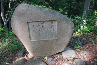 明神ケ渕には直木賞受賞作家の渡辺喜恵子の碑がある。小説「馬淵川」は渡辺喜恵子の母の故郷である福岡町(現在の二戸市)に疎開中に執筆した福岡町を舞台として、盛岡藩の御用商人の後妻となった士族の娘・さと子を主人公に、幕末から関東大震災までの四代70年に渡る、みちのくの女たちの悲しい愛の物語です。