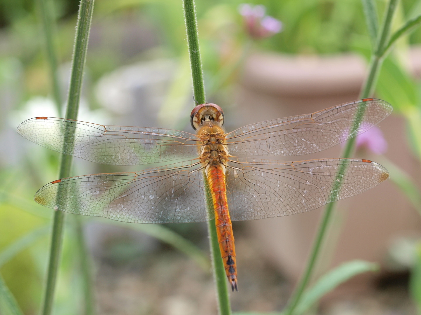三尺バーベナにトンボが止まっていました。