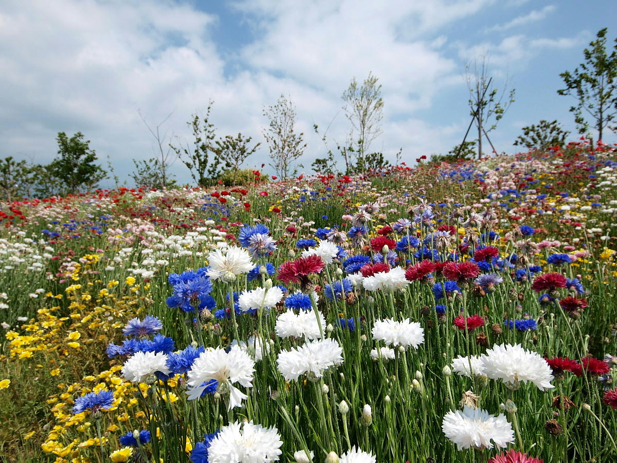 ポピーやヤグルマギクなどは一面に咲いて綺麗でした。
