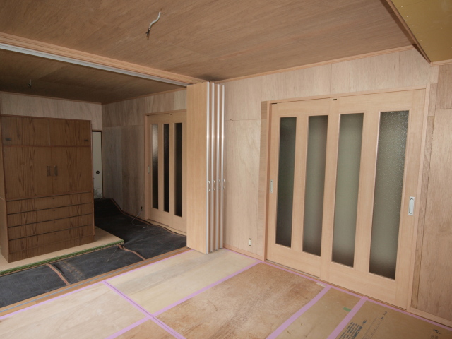 今月から始まった和室2部屋のリフォーム。昨日で大工工事が終わったので残るは壁と天井の仕上げと畳の入替です。