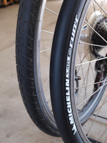 サイドがひび割れていたMTBのタイヤを交換しました。ミシュランのスリックタイヤです。全く溝が無いので雨の日は走れません。まぁこのチャリを雨の日に乗った事は無いのですけどね