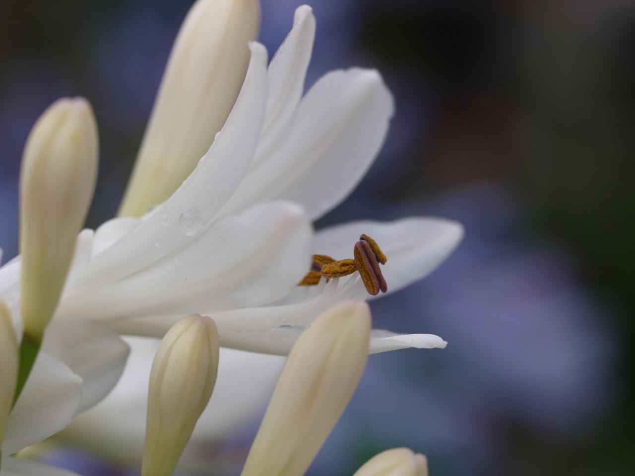 白いアガパンサスが咲きました。今朝は風が強く吹いて撮り難かったです
