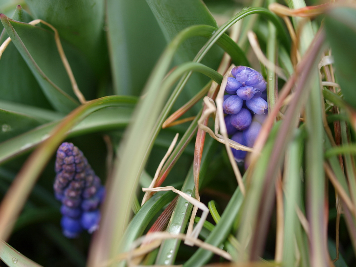 ニョキニョキとムスカリーの花が出てきました。アセビも咲き出しています。