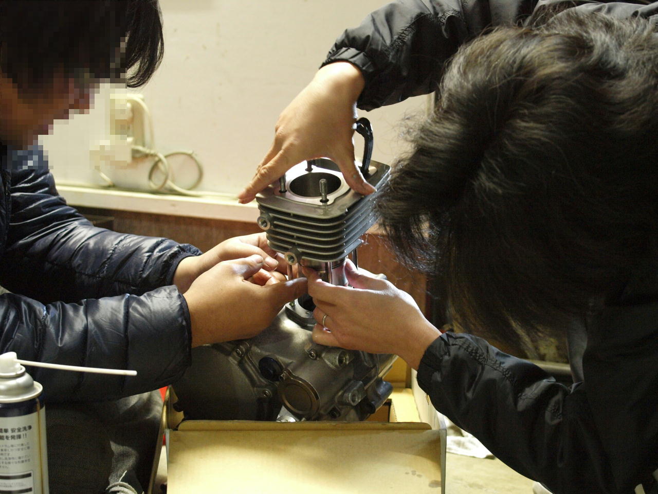 私は所々で面倒な作業は手伝いましたが若い連中が中心で作業して何とかシリンダーの組み付けまで完了〜残りのヘッド周りは再来週の作業となりました。