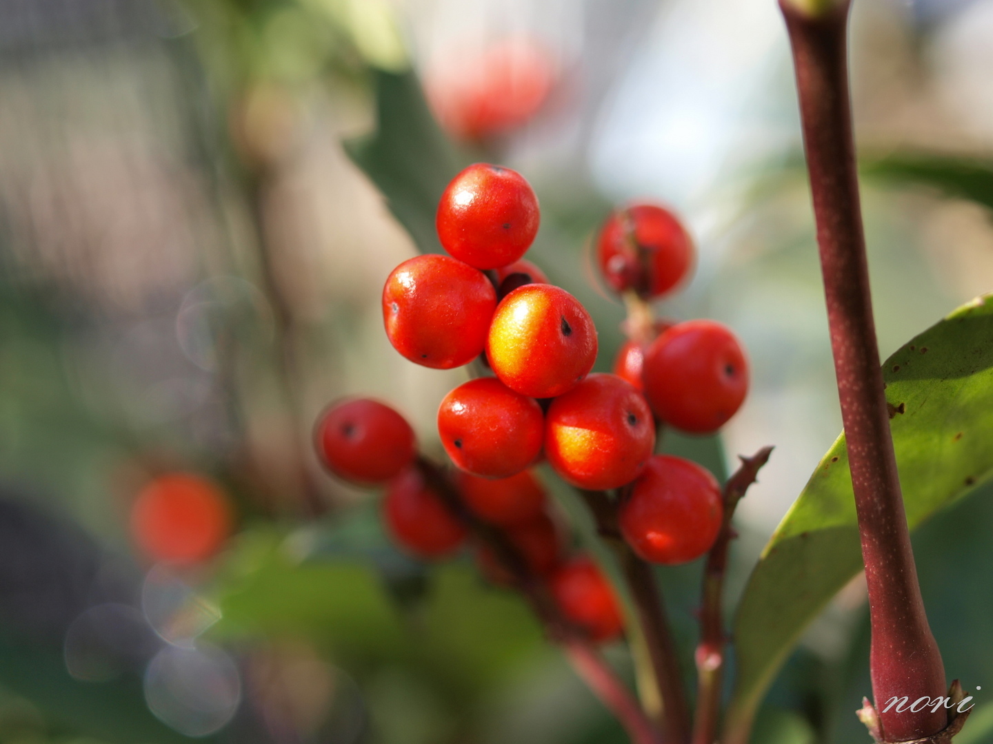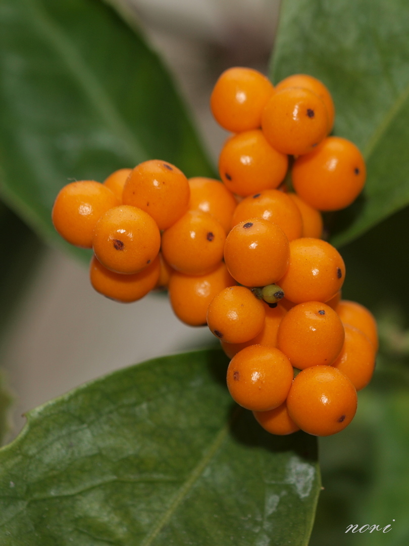黄色い千両は真っ先に食べられてしまうので枝を切って玄関に飾っています。