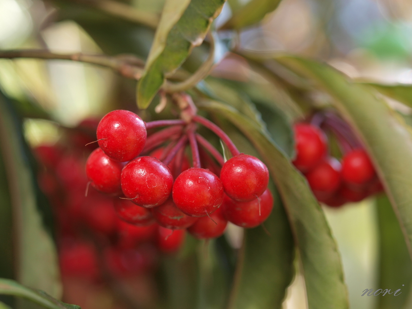 いつも鳥に食べられてしまう千両と万両の実庭の陰に隠れていた千両を発見。先日UPした万両は鳥に狙われて半減していました。しかし玄関先の陰にも万両がありました