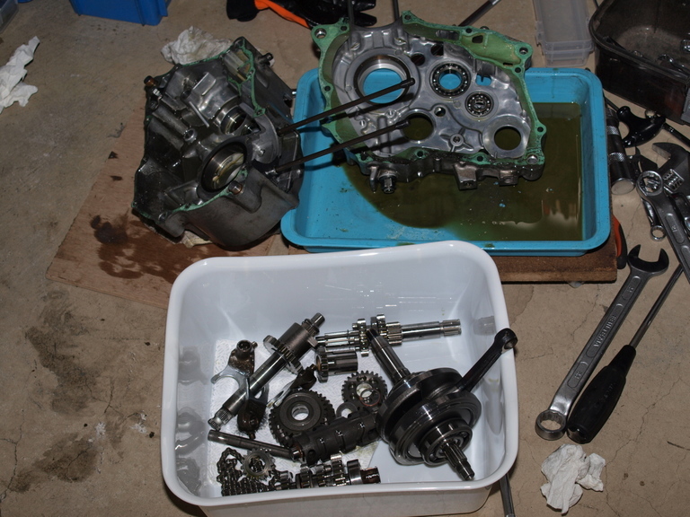 後はクランクケースを開けて分解洗浄です。部品が揃い次第組み付けていきます。あっ! ポート加工もするんだっけ