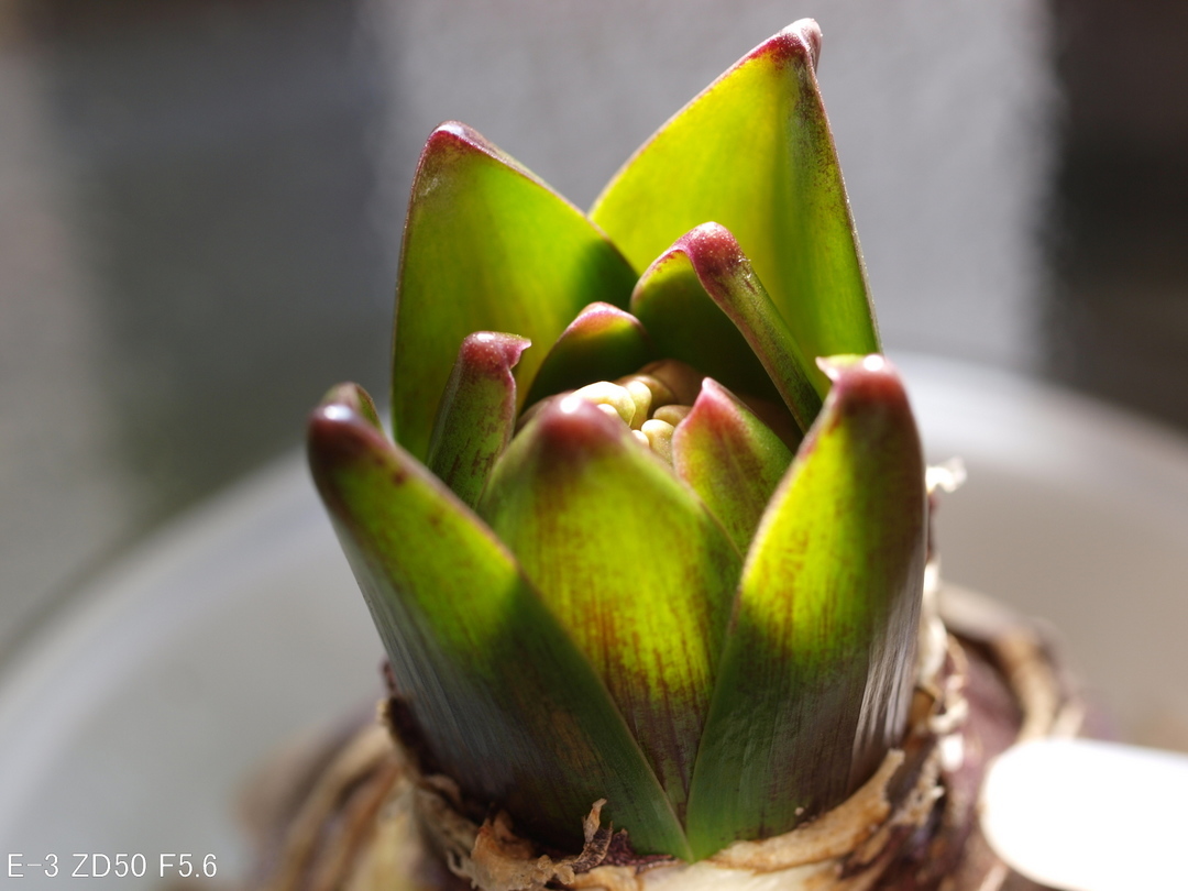 まだ芽が出てきた状態ですが家の中でも比較的日当たりが良くて寒い玄関に置いて花が咲くのを待ちます