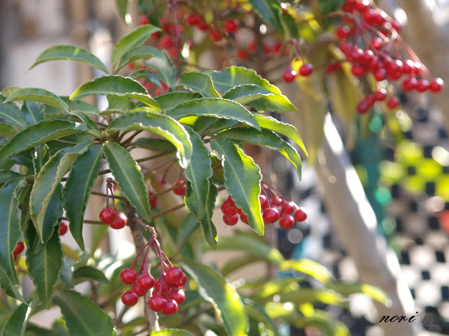 この時期には鳥に食べられて無くなってしまう万両の実はまだ健在です