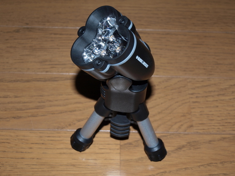少し店内をウロウロしていたら50%オフの棚にLEDライトを発見。LED自体は普通の砲弾5oの3個なので大した明るさではありませんが自立して頭の角度が変えられるので車イジリの時に使えそうです