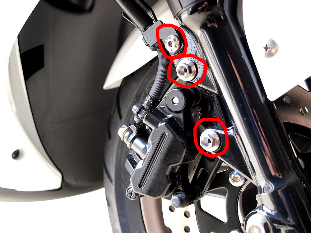 貫通穴付きのキャリパーボルトはYZF-R1。