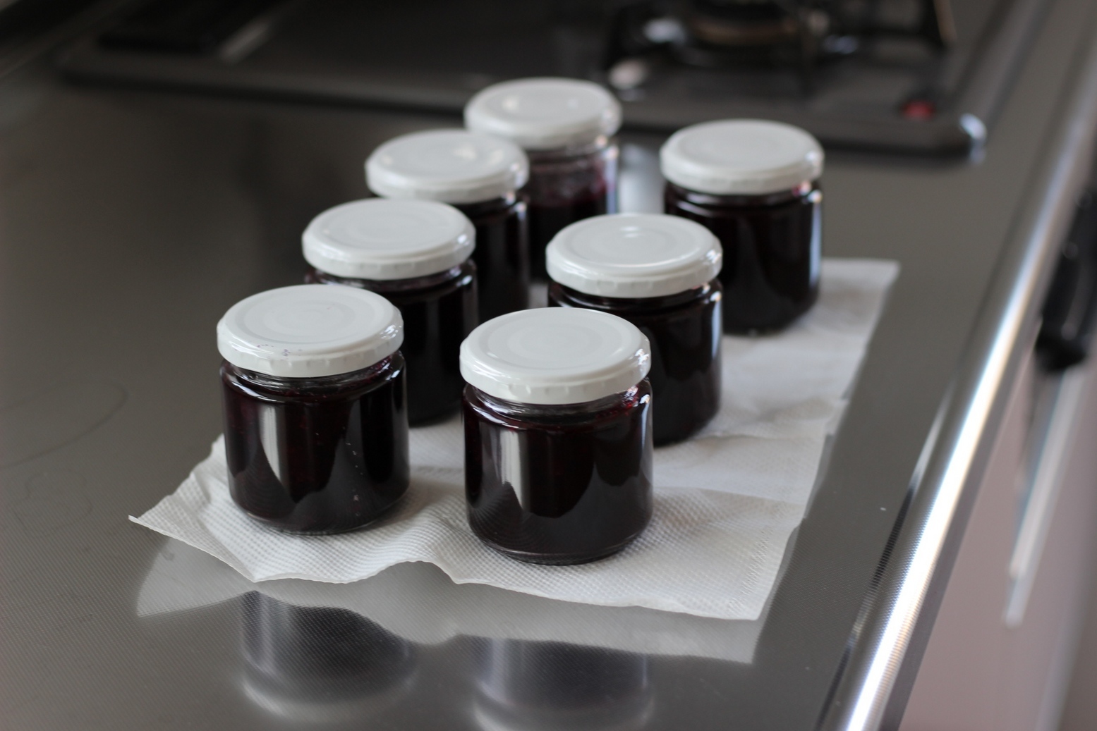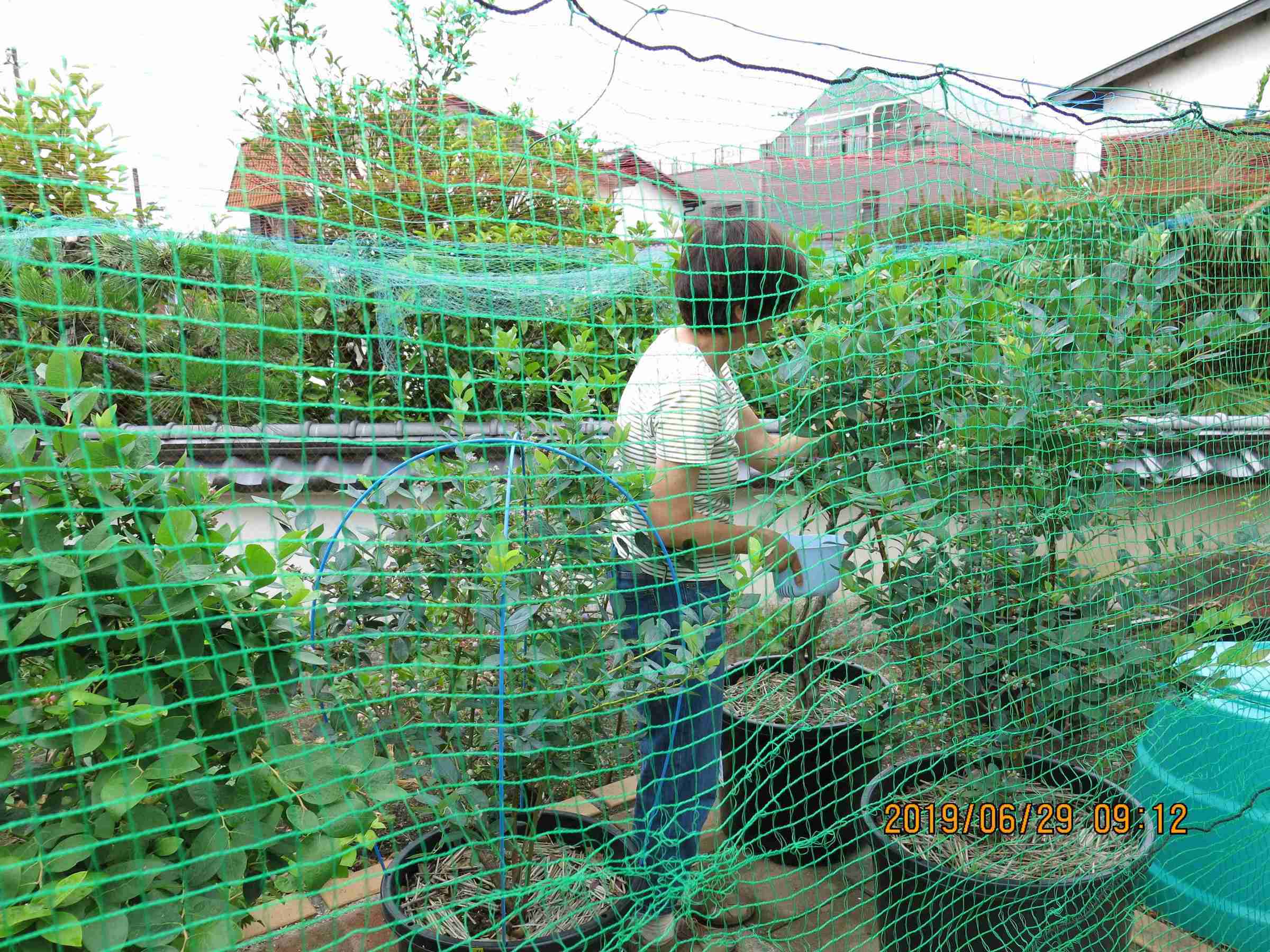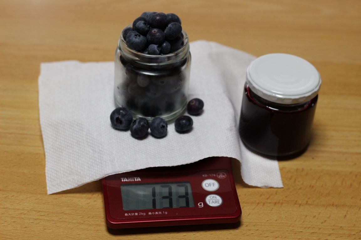 おかげさまで、ブルーベリージャムづくりは順調に進んでいます。 ブルーベリーは3つの系列があります。 寒いところや高地で栽培されるノーザンハイブッシュ系と温暖地でも栽培可能なサザンハイブッシュ系、そして暑いところでも栽培可能なラビットアイ系です。ラビットアイ系は土壌の酸性にあまりこだわらないようなので、育てやすいと思います。実は甘くてよく採れますが種の存在を気にする方がいます。8月に入らないとあまり採れないように思います。 サザンハイブッシュ系は酸性土壌にこだわるようです。7月始めから収穫期に入り、大実で風味が良いので栽培しています。 今、ラビットアイ系の「バルドウイン種」が順調に実っています。この種の特長は「十分な甘さと安定した収量」にあります。晩生種です。ということは、これが採り終えれば今年の収穫は終了です。 「パウダーブルー種」という小粒ですが甘みと品の良い風味を兼ね備えた晩成種も数本ありますが、収穫量は期待できません。 7月はじめのサザンハイブッシュ系と比べて、ラビットアイ系のバルドウイン種は甘みが強いのでジャムを作るときに当然、グラニュー糖の量は20%程度減らします。ちょうど良い「甘さ控えめ」になっていると思います。 わが園の早生種は風味はあっても甘みの薄いです。ただ、この実で作ったジャムはちょうど良いゼリー状になり、そのままでもお菓子のようです。晩成種で作ったジャムとは少し違います。添加物を使っていないので、採れたブルーベリーの種類でジャムの味やゼリー化の状態が異なるのも当然ですね。