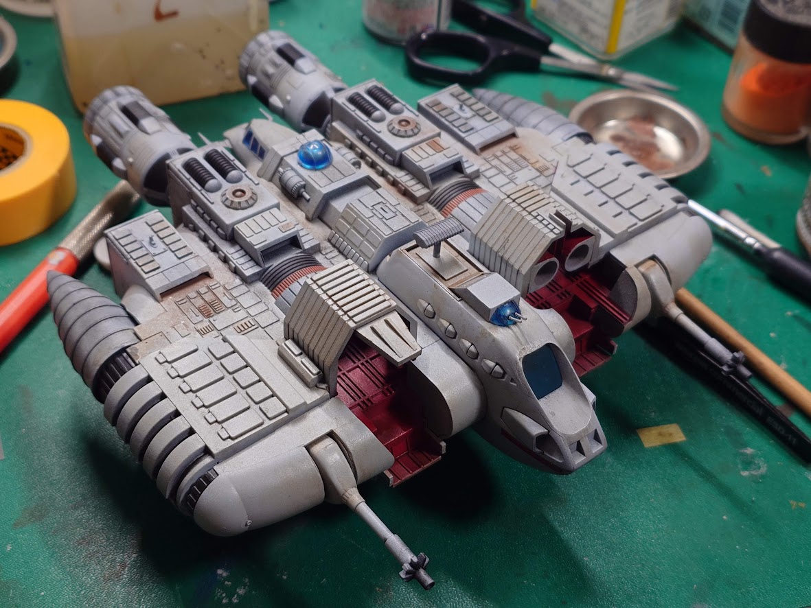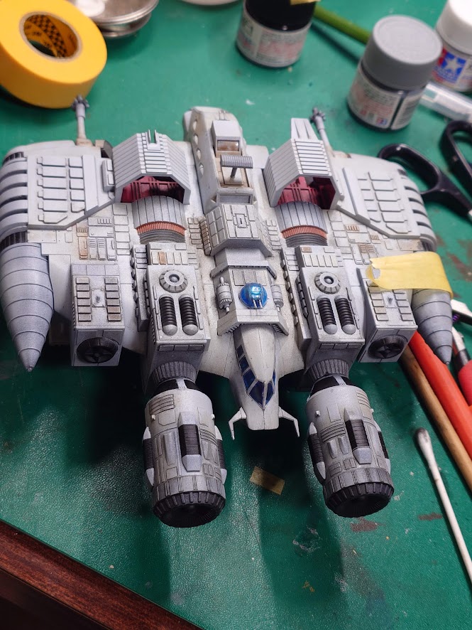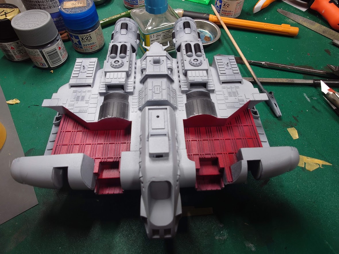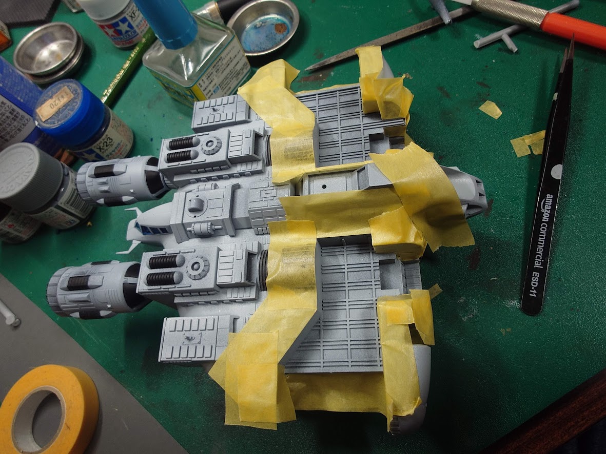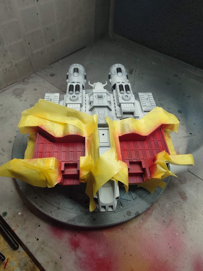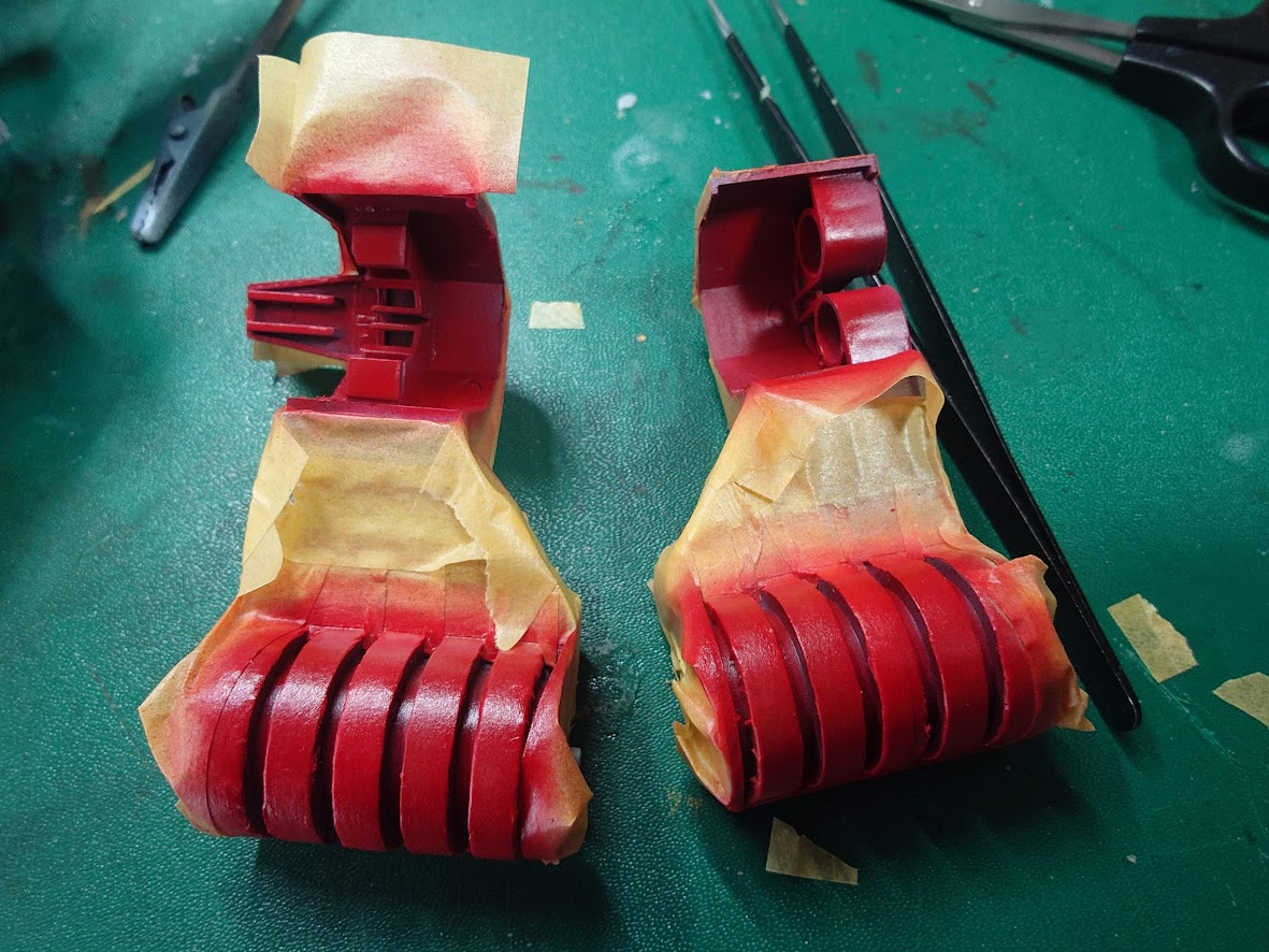 一部、溝の中が赤で塗分けなのでマスキングで対応します