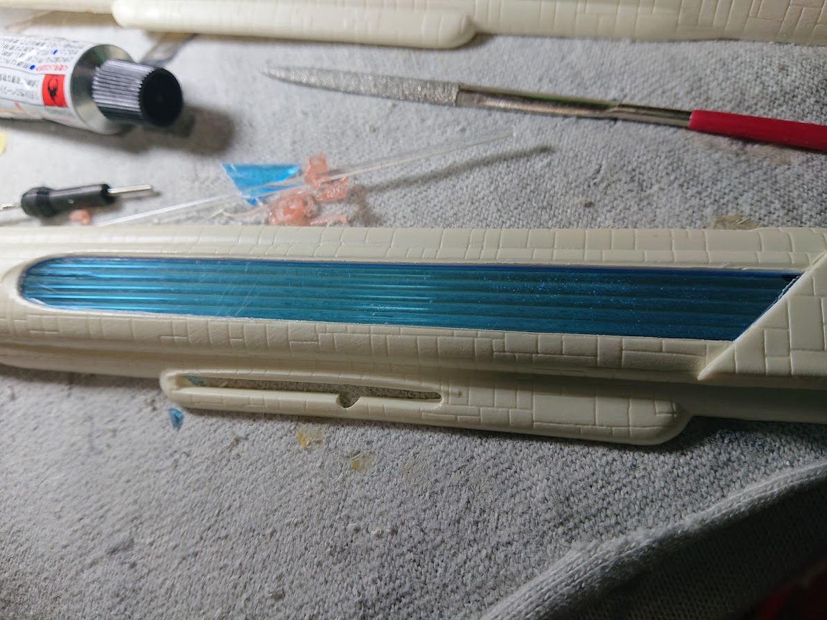 裏側にタミヤのクリアプラ棒2mmを張って行きます