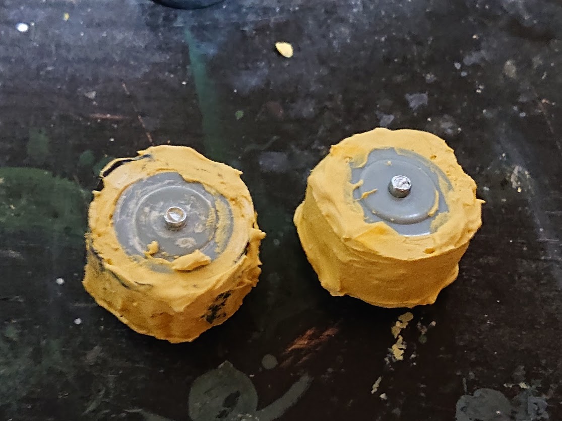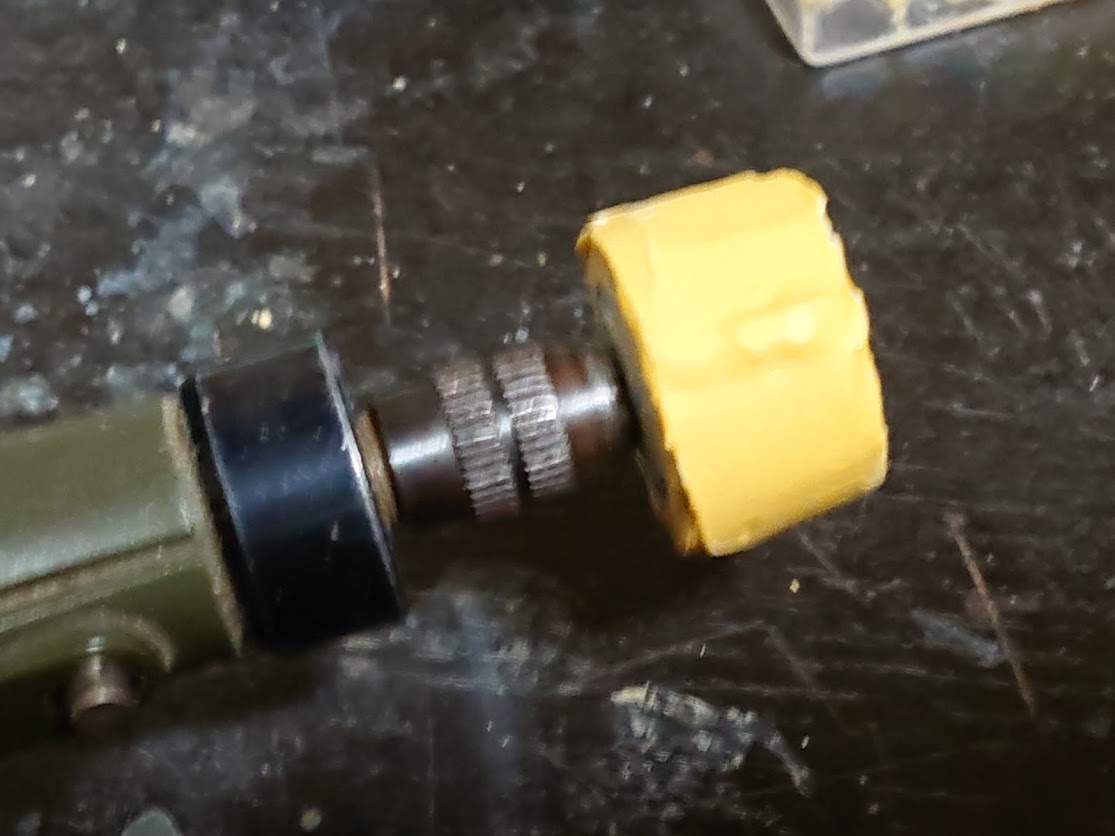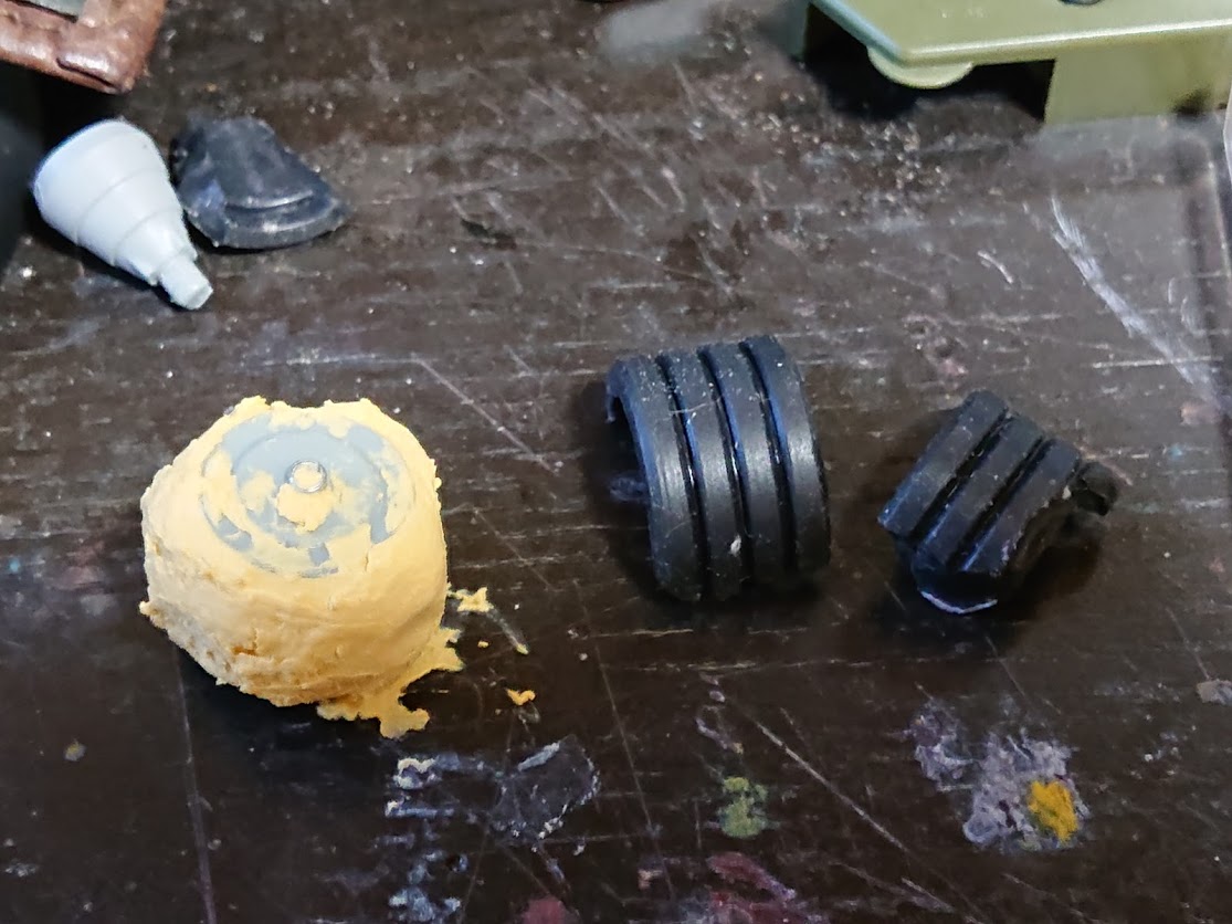 リューターにポリパテを盛りつけた、ホイールをセットして