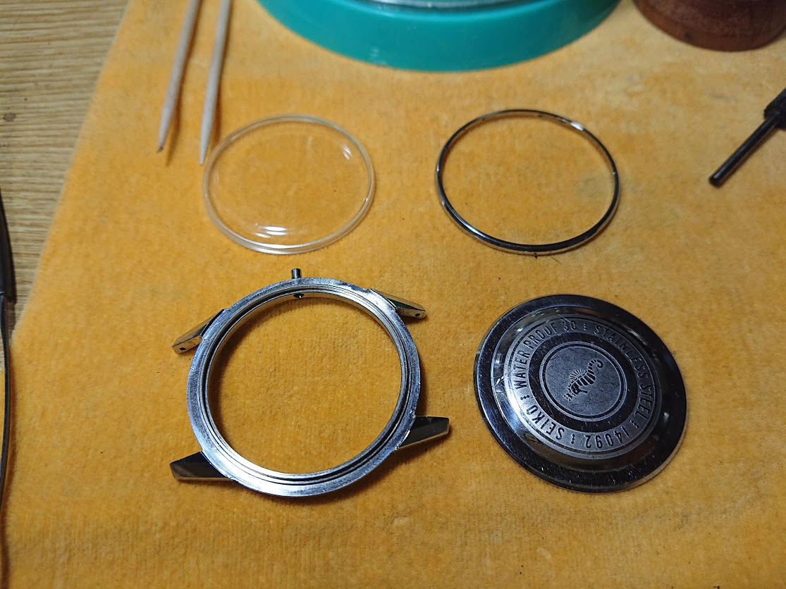 ケースはダイヤモンドペーストでバフ掛け、サンポールに漬けてくすみを取りました。