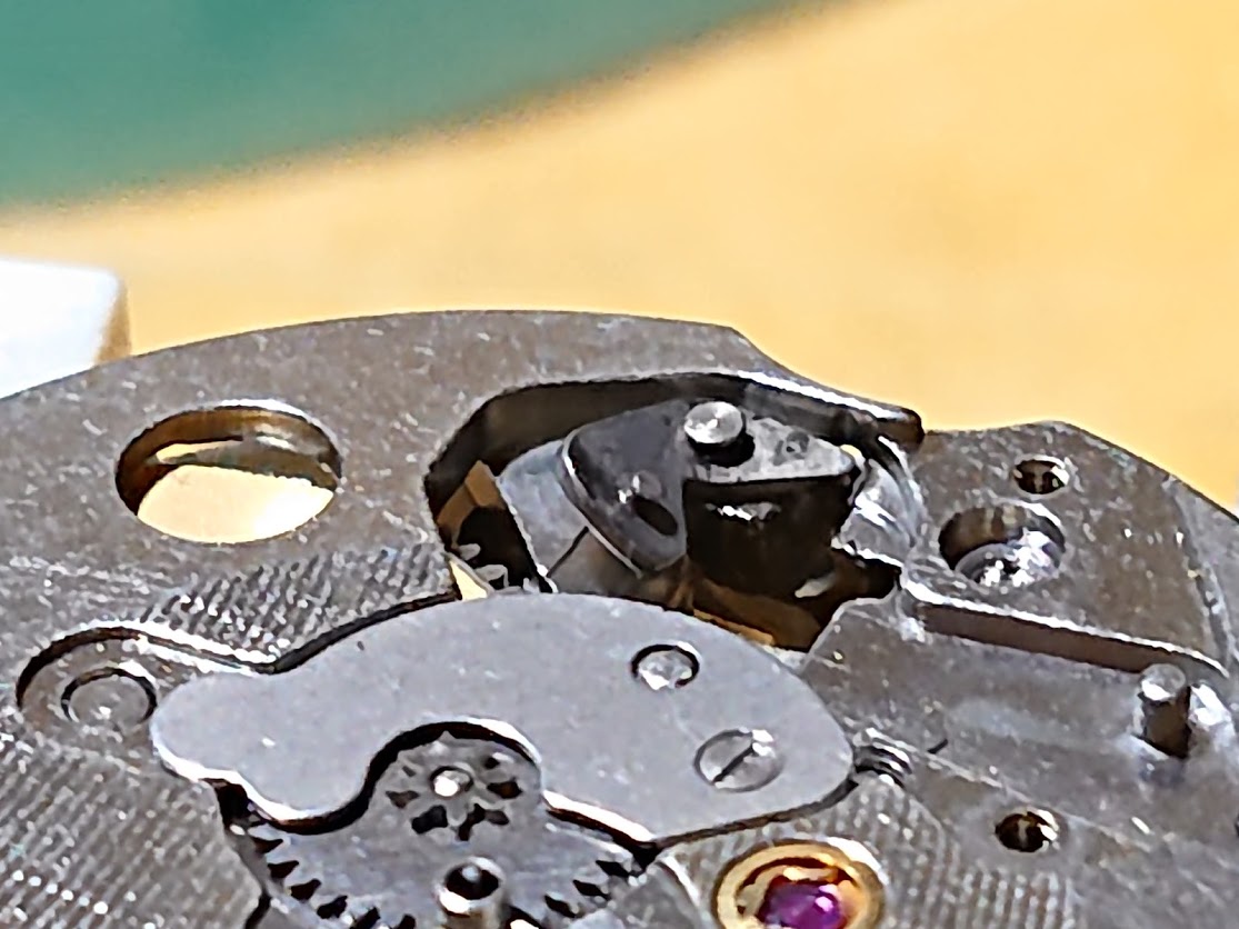ゼンマイが巻けないのは角穴車が表裏逆に付いてる為でした。