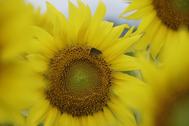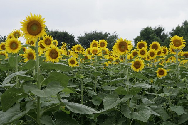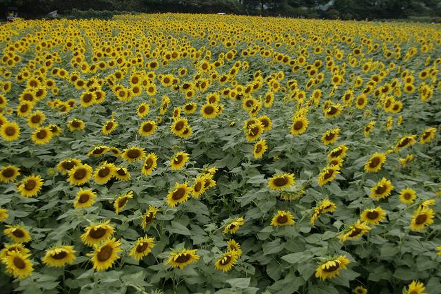 休耕田利用のひまわり畑は見事に同じ方向に顔を向けて咲いていた。