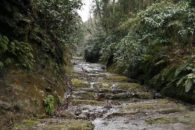 @朝比奈きりどうしまでの道はごつごつ岩がむき出しの水が流れる悪路 鎌倉武士に思い寄せながら歩く