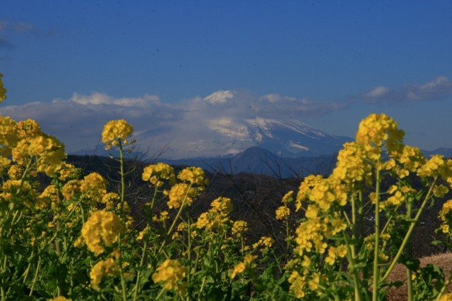 富士山には少し雲がかかっていたけれど菜の花と青空は最高の景色だった。 1/6写