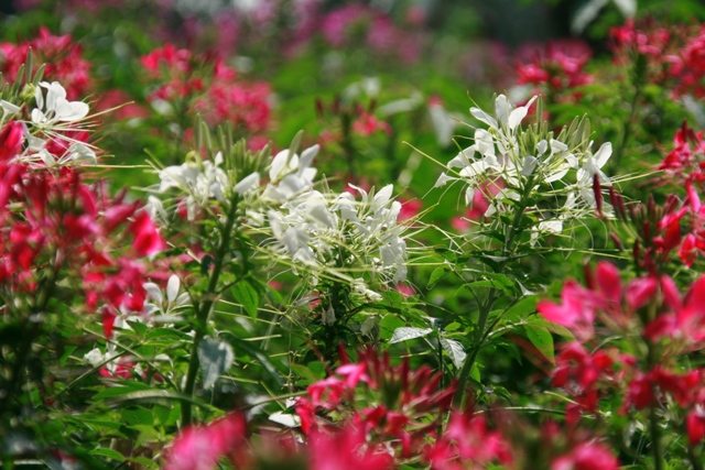 @白、ピンク、紫と色あざやかに咲いていたのはクレオメという名の花。