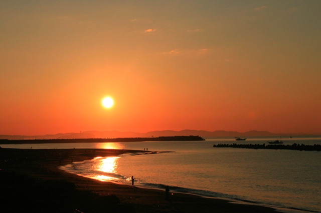 海岸に出ると西の空 丁度富士山の辺り