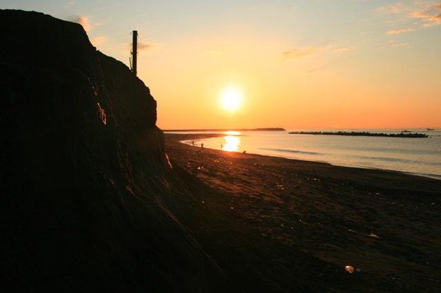 台風18号の影響か、砂浜は波に削られて高い崖が出来ていた