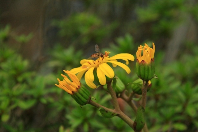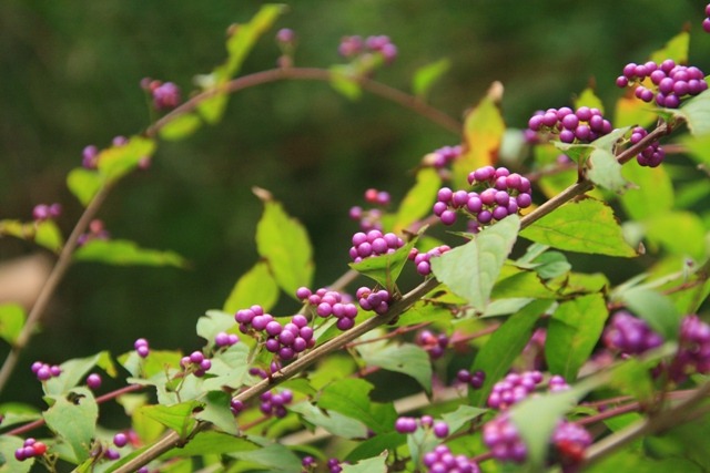 ムラサキシキブ、つわぶき、菊、