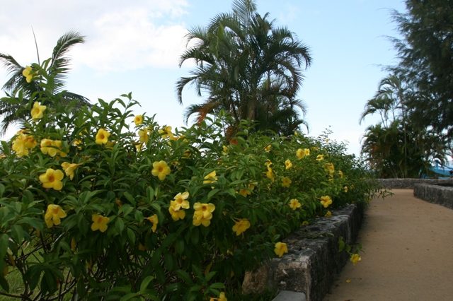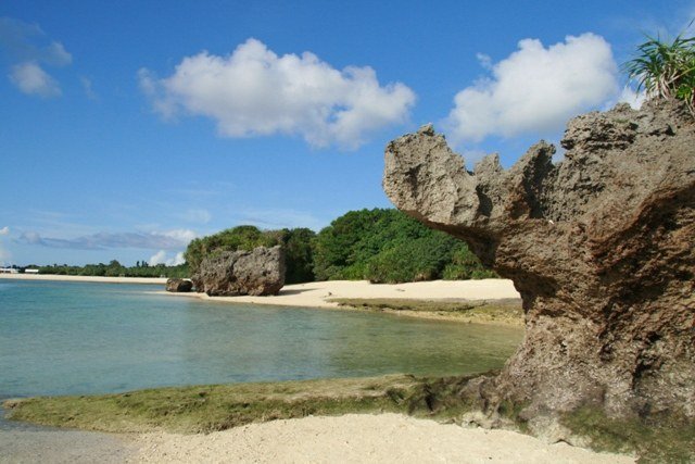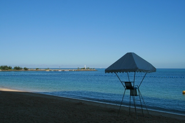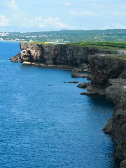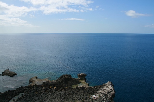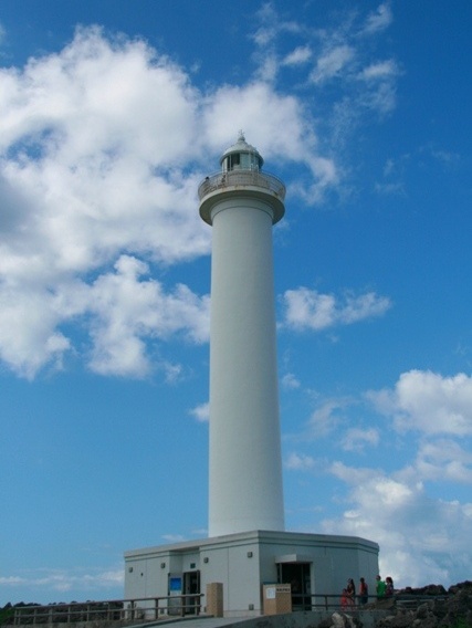 東シナ海の船の安全を守る灯台、沖縄で一番高い灯台 それが沖縄島の中ほど読谷村の残波岬の先端にある残波灯台 広い陸地のの先に白い灯台が見えた 大部前に訪れたポルトガル ロタ岬を思い出させた もちろん灯台内の展望台へ 目の前に広がる水平線、地球はまるいを実感する 右手にはサンゴが隆起したと言われる30mの絶壁が続く 日差しは強いが吹く風はさわやか まさに海の絶景を堪能した 8/23写