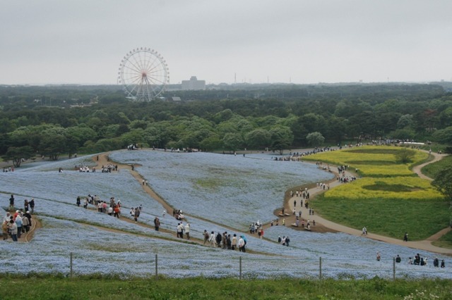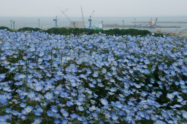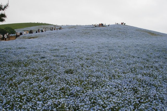 450万本のかわいいネモフィラの花、一つ一つの青色が心を癒してくれるようだ。