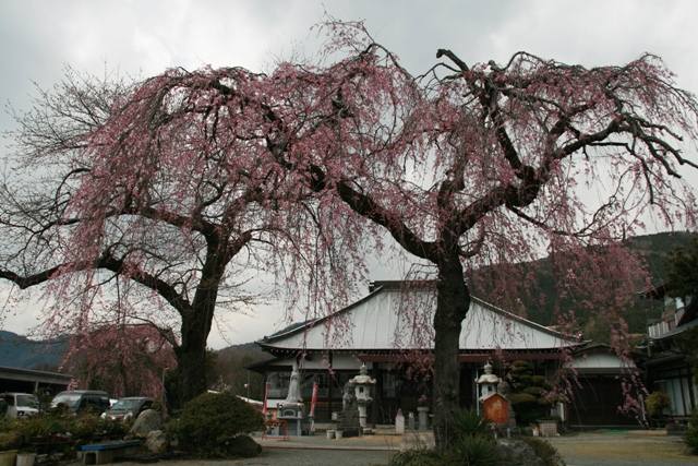 江戸彼岸彼岸枝垂れサクラで樹齢120年近くといわれている。