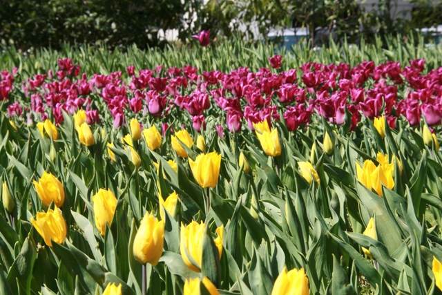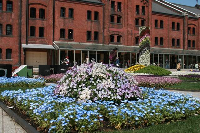 レンガ倉庫の前には花の庭が作られ「フラワーガーデン2009」で賑わっていた。ブルーの花はネモフィラ