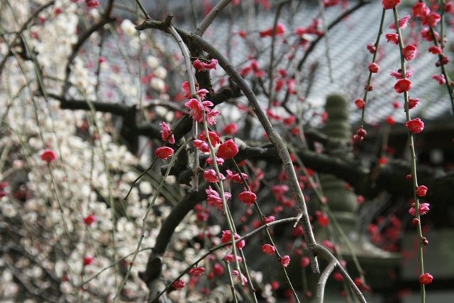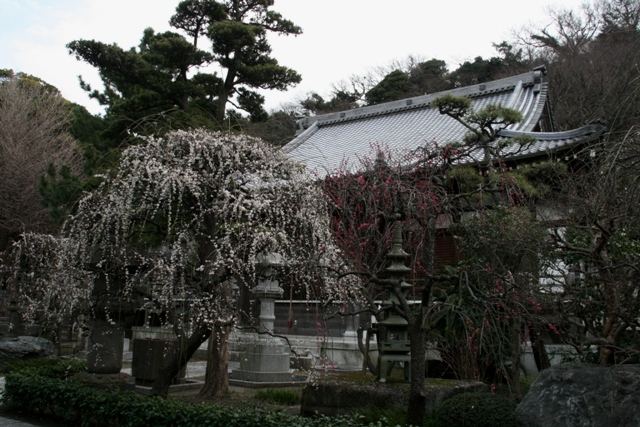 2月11日江ノ島方面に行くチャンスがあり 再び常立寺を尋ねる事になった。 沢山の梅の木があってもみんな一斉に咲くわけではなく いろいろな風景を楽しませてくれる。 今日はしろとピンクの枝垂れ梅の競演が見られた。