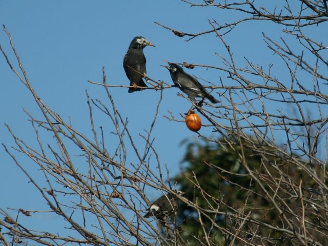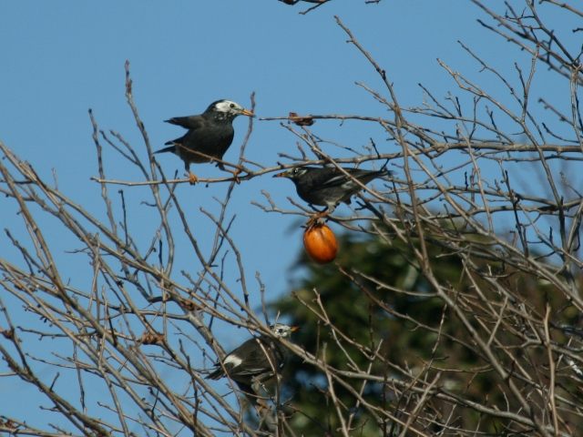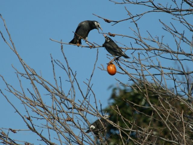 新鮮野菜をもとめて伊勢原方面にお買い物 途中トヨタの販売店でコーヒーをご馳走になりながら 紅ふじさん推薦の「ダブル・パール富士」を拝見する なかなか見ごたえがありました 岡崎のT字交差点で信号待ちで外を見ていると ヒヨドリが一羽 二羽 三羽やってきて たちまち柿の主導権を巡って言い合いが始まる カメラを取り出して撮影 信号が青に変わった 後続の車もクラクションを鳴らすことなく続いている どのヒヨドリが柿を獲得したかは確認できなかった 晴天のノンビリトした一日の出来事でした