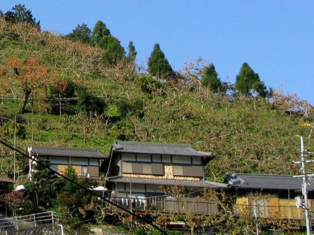高野山の上り口、急斜面を利用して高野柿が見事に実っている。