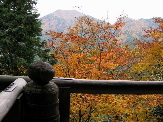 300段以上はある階段の上にそびえる懸崖作りの奥の院御影堂、そこから眺める山々深山の趣がすばらしい。