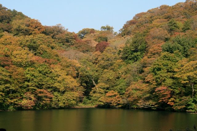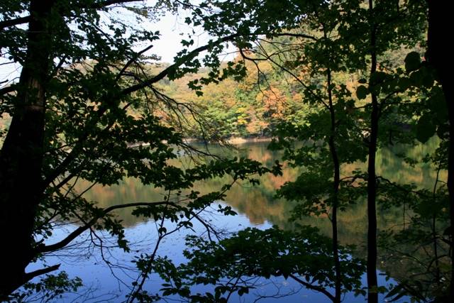 ブナ、ナラ、カエデの茂る原生林に見え隠れする湖沼は