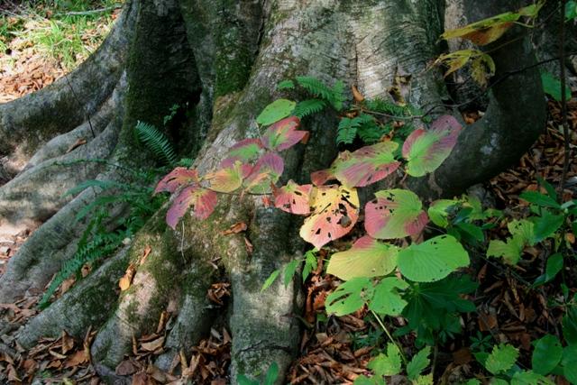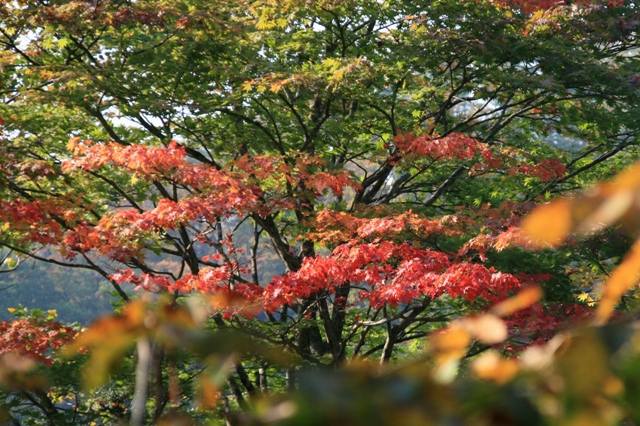 秋の暖かな日ざしを受けて黄葉、紅葉が美しい。