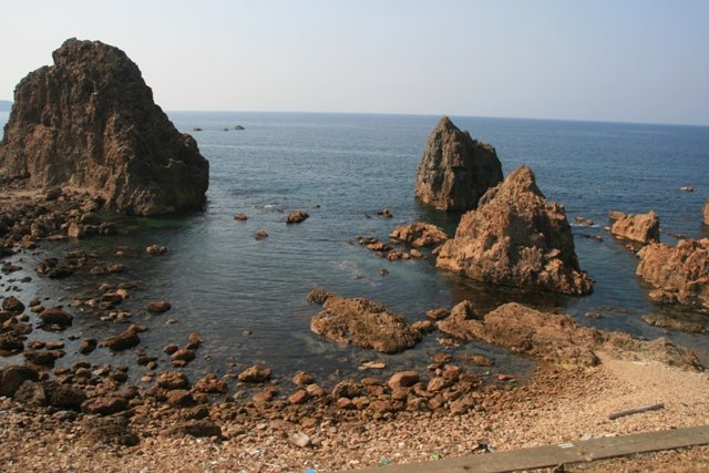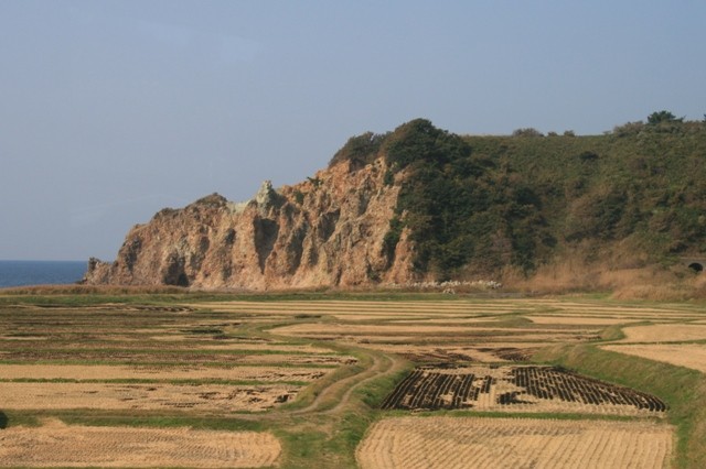 窓からぎりぎりに見える海岸線を追っていくと穏やかな海、畑、漁師の村、岩場、郷愁を感じながら外の景色をながめた。