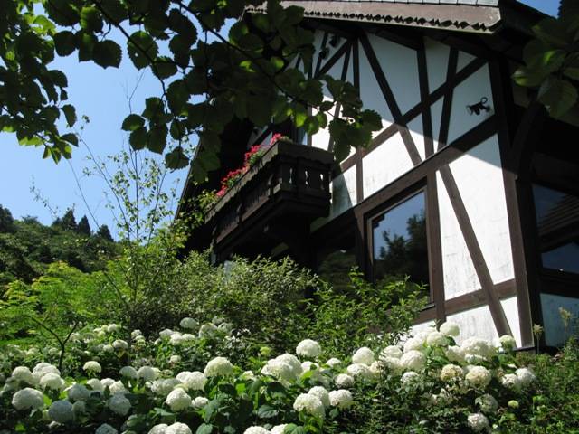 Bオルゴールミュージアムの建物とアナベル