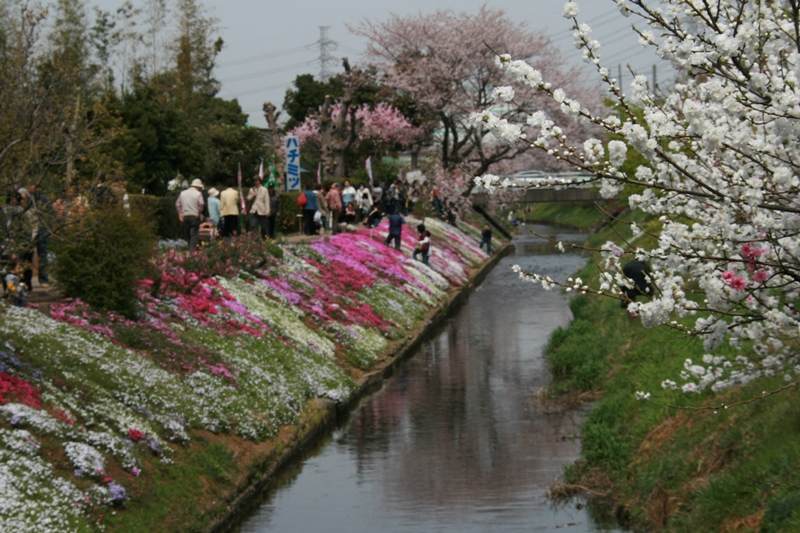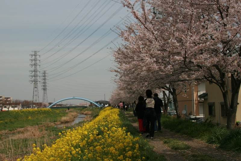 渋田川のさくらも満開、昨日の風で川の中は花びらがいっぱい、