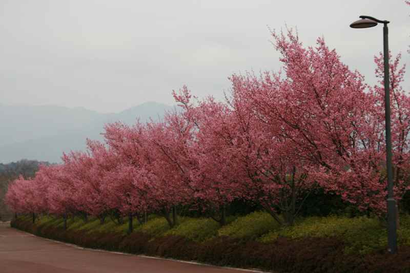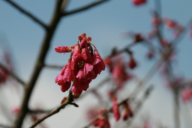 @一番に沖縄で咲き始めたさくら、寒緋桜が8分咲きに咲いていた。
