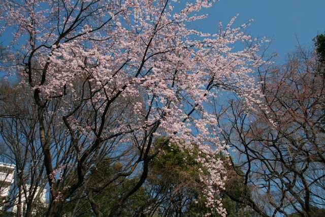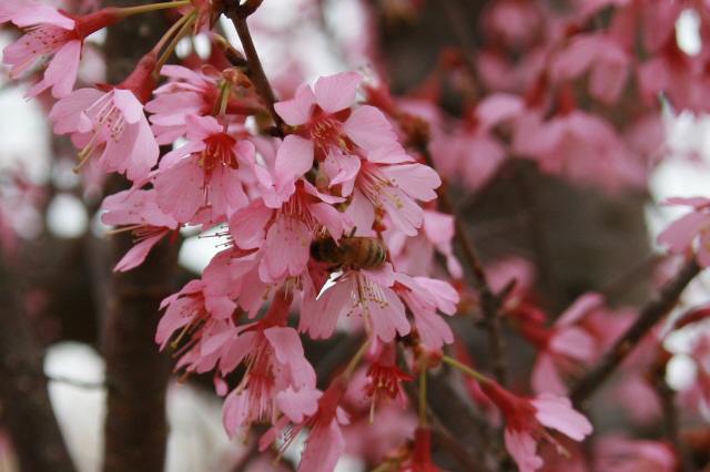 寒緋桜とマメザクラの交配種、イギリスで作られたそうだ。