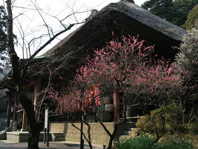 日向薬師の梅見駐車場前の梅はほぼ満開