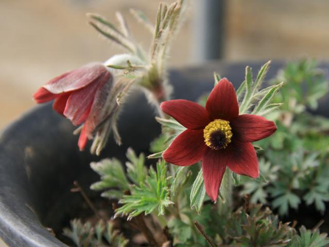 まだ咲くには早いと言う事で親切に温室で咲いているおきな草を見せて下さった。