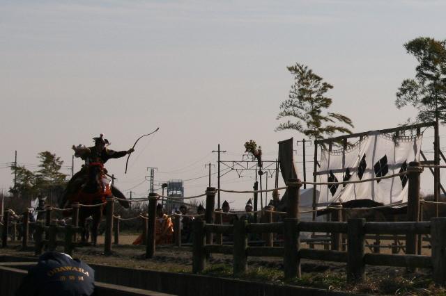 田園で流鏑馬