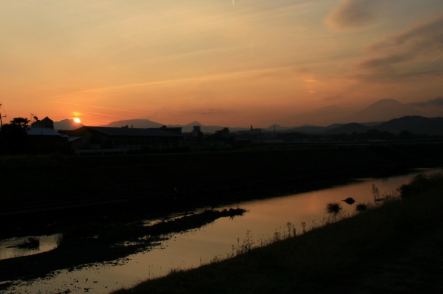 赤い太陽がまさに出ようとするところ、信号が長く感じる。